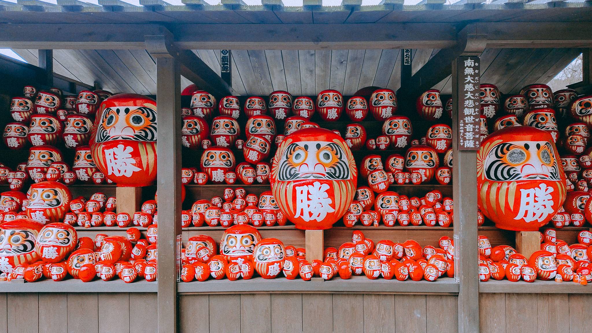 You will see hundreds of bright red Kachi-Daruma (good luck dolls) scattered across the grounds. People write their wishes on the back before taking one home.